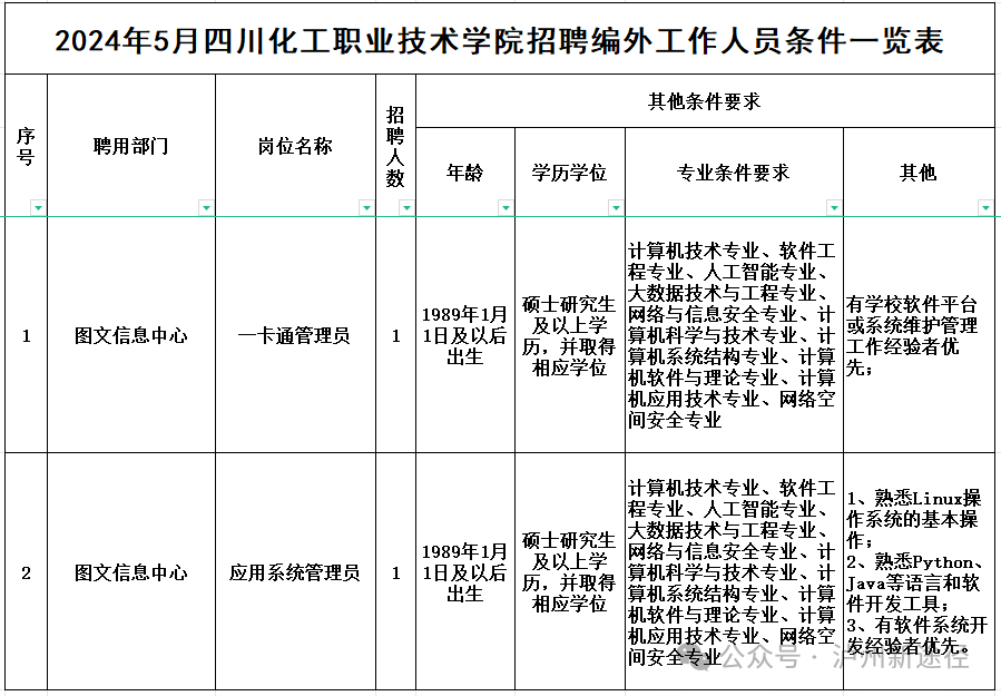 附件1:2024年5月四川化工职业技术学院招聘编外工作人员条件一览表.xls