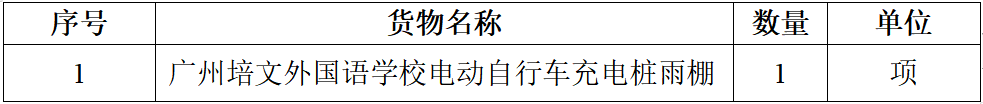 广州培文外国语学校根据工作安排,对广州培文外国语学校电动自行车充电桩雨棚项目公开招标,现邀请合格供应商参加投标。有关事项如下: