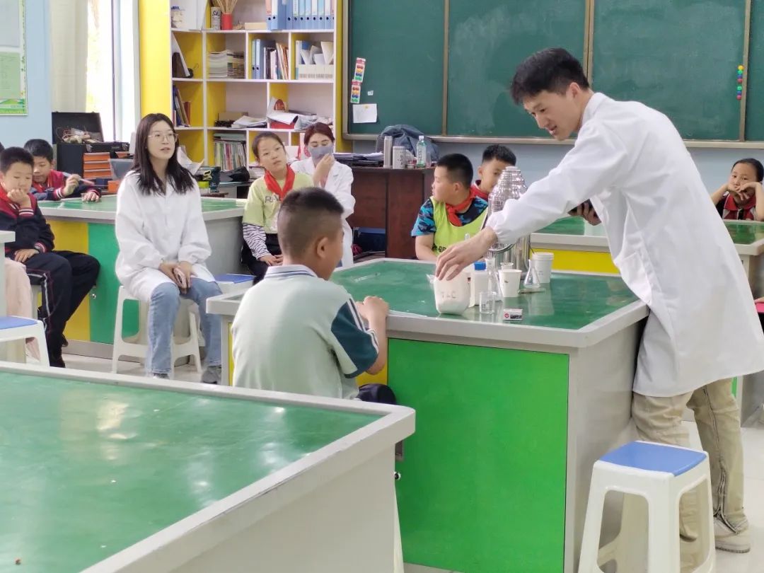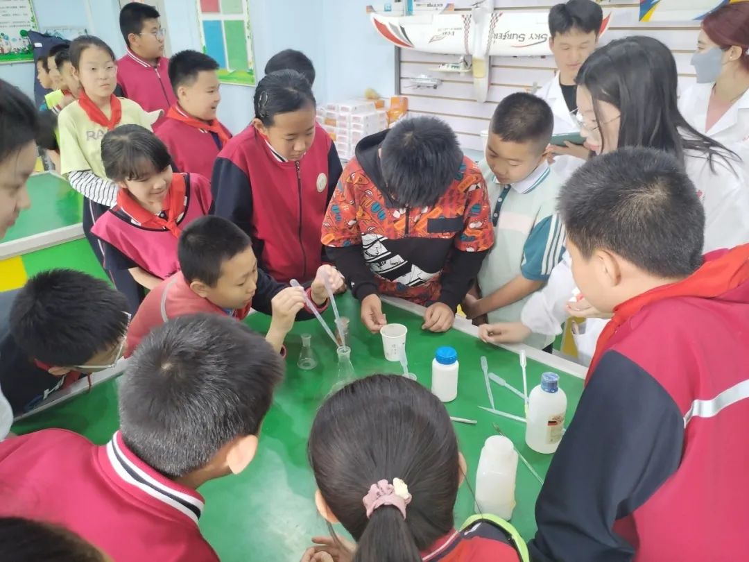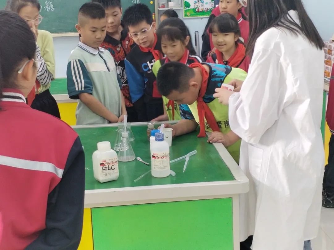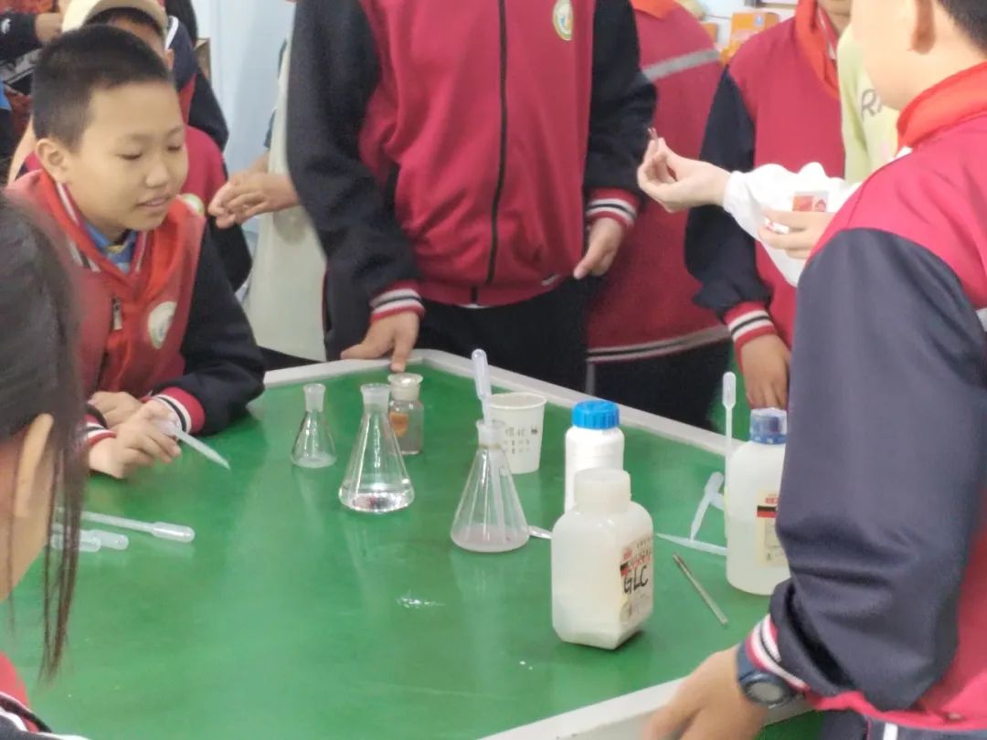 志愿者们通过“银镜反应”很好地诠释了这一点。随后将全班分为五小组由“小助手”们分别带孩子们展开实验,可以让孩子们近距离的观察这些现象,感受到化学的魅力。