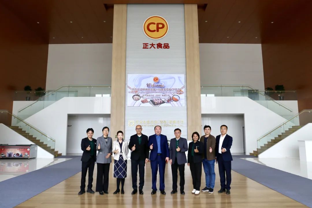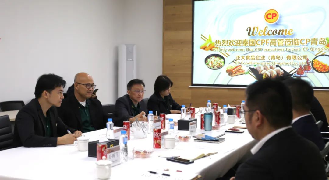 2024年4月19日,泰国正大卜蜂食品公司(以下简称CPF)即食食品业务执行副总裁MR.NARERK MANGKE,鸭屠宰工厂资深副总裁MR.THEERAYUT PATCHARAMANEEPAKOR,香肠研发资深副总裁MRS.NUALCHUN SUKHUMPA,工程中心肉类加工总经理MR. TERAYUT TATIYAPRAPA莅临正大食品企业(青岛)有限公司考察交流。段佩财资深副董事长、周丽華资深总裁,刘风科资深总裁,樊凌翔资深副总裁、崔智慧副总裁协管理团队热情接待。