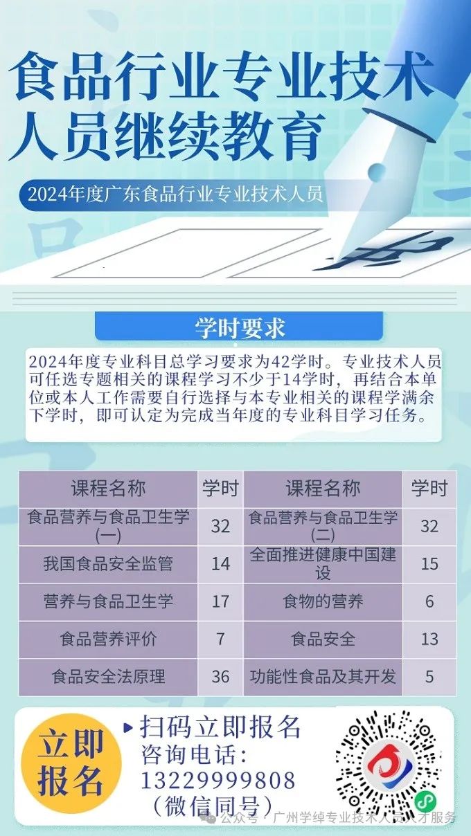 根据《专业技术人员继续教育规定》(人社部令第25号)《广东省专业技术人员继续教育条例》和《广东省人力资源和社会保障厅关于进一步做好我省专业技术人员继续教育有关工作的意见》(粤人社规(2018)11号)要求,结合本行业实际,现发布2024年度我省食品行业专业技术人员继续教育专业科目学习指南。