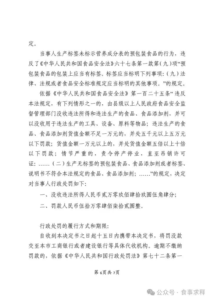 近期,上海八仙食品有限公司因为生产标签未标示营养成分表的预包装食品而受到行政处罚。