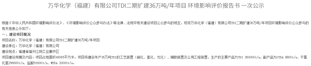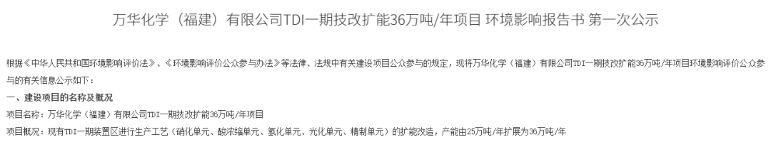 万华化学 TDI 扩产