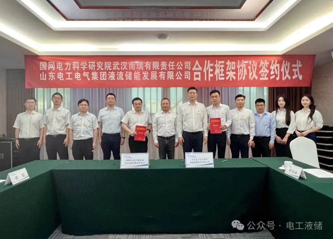 4月25日,山东电工电气集团液流储能发展有限公司与国网电力科学研究院武汉南瑞有限责任公司在济南举行合作框架协议签约仪式。电工液储党支部书记、董事长曹勇,武汉南瑞副总经理李永飞出席签约仪式。