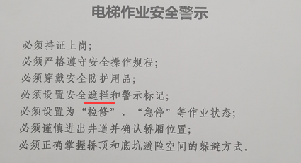 日常生活中误用“遮拦”的例子也是存在的,如下图(电梯里贴的说明):