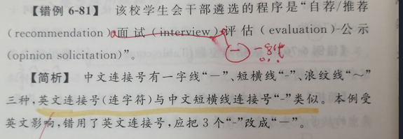 (GB/T 15834—2011)都是很短的。“木铎书声”公众号里有这么一篇文章——《中英文连接符号用法》,最后讲了讲“短横线”,其中介绍到“以前短横线有两种,半字线和三开线,现在统一用三开线。”就这个表述我问了一下原作者,他说“三开线就是长度为一字线三分之一的短横线,这是以前的说法,现在统一叫短横线了。为何用三开线,是为了与英文半字线长度一致,也为了电脑输入方便,也有人叫它半字线,现在都是一个意思。”我记得我刚上班的时候,见到的半字线都是比标准中的略长一些,