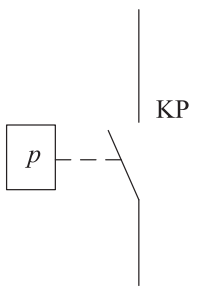 ![]() | 参考GB/T 4728.2—2018《电气简图用图形符号 第2部分:符号要素、限定符号和其他常用符号》其中的操作件符号应为 ![]() (外框正方形),不应画为长方形。其中字母p表示压力,应该用大写字母 | ![]() |