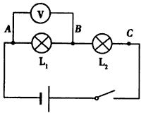 我们一般用电压表并联在被测设备两端,测量设备的电压,如图测量AB之间电压,也就是加在灯L1的电压。
