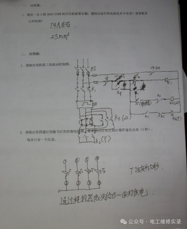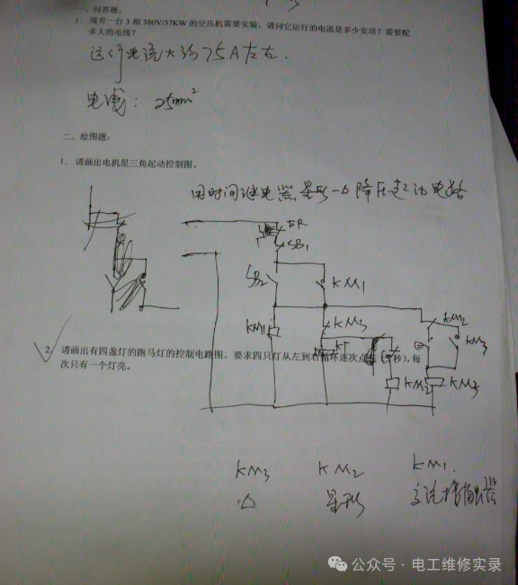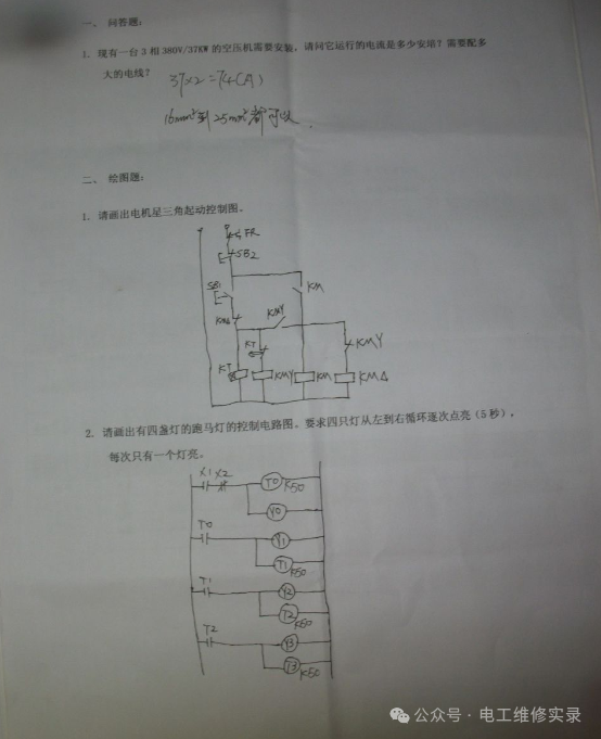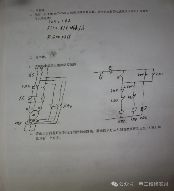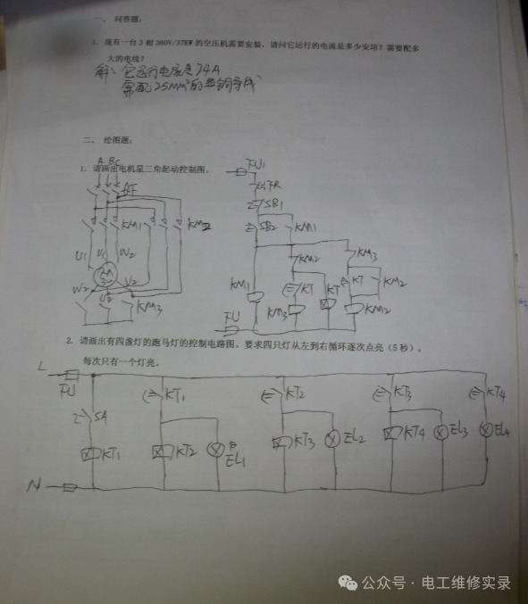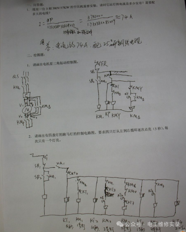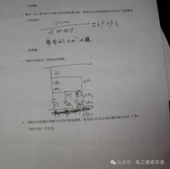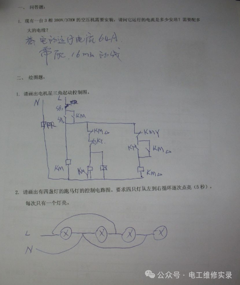 就以第一道题来说,严格的话,没有一个是正确的,因为你没给出功率因数和效率,他们就各施其法,自己假设出来的,或者根据经验公式估算出来的,所以你不能完全说他们错。因此作为考官,不能仅凭这么一些题就完全否定他们的水平,除非他们真的没有一点基础,一点都做不出来。