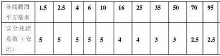 例如:6平方毫米加系数5=6+5=11(千瓦),10平方毫米+5=15(千瓦),16平方毫米+5=21(千瓦),25平方毫米+5=30(千瓦),35平方毫米+5=40(千瓦),50平方毫米+5=55(千瓦),70平方毫米+5=75(千瓦),95平方毫米+5=100(千瓦)。