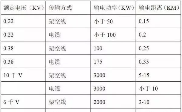 根据不同的额定电压推荐不同的输出容量输电距离: