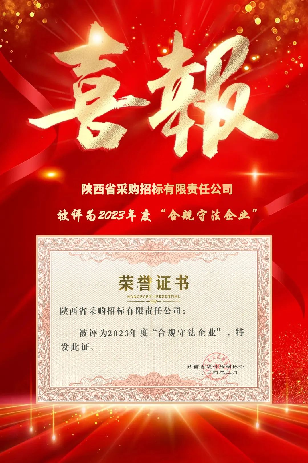 喜报 | 陕西省采购招标有限责任公司被评为“合规守法企业”