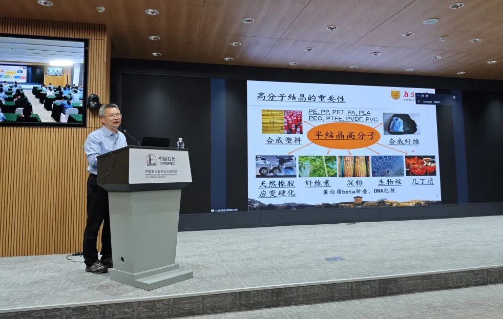 胡文兵教授2004年起任南京大学教授,2008年获得基金委杰出青年科学基金支持,2020年成为美国物理学会会士,曾先后编写出版《Polymer Physics: A Molecular Approach》《高分子物理导论》《高分子结晶学原理》等重量级教材。此次讲座,胡文兵教授聚焦高分子结晶学及其相关物理化学问题,介绍分子水平上的格子理论与蒙特卡罗模拟研究,以及温度调制式差热分析技术等物理表征手段,为科研人员开拓了创新思路。200余名科研人员聆听讲座。