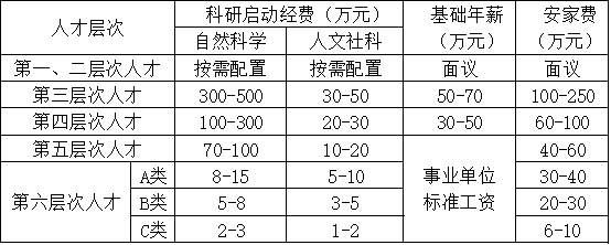 4. 学校根据人才层次给予相应的引进待遇。特别优秀人才实行“一人一策”、“一事一议”、“特事特办”的原则,协商确定科研启动费、岗位津贴、安家费和住房等待遇条件。