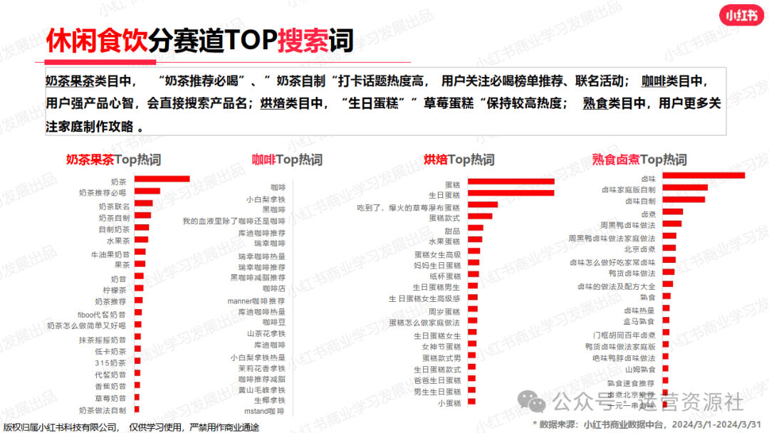 今天分享的是小红书运营资料:《2024年休闲食饮行业月报(3月)》