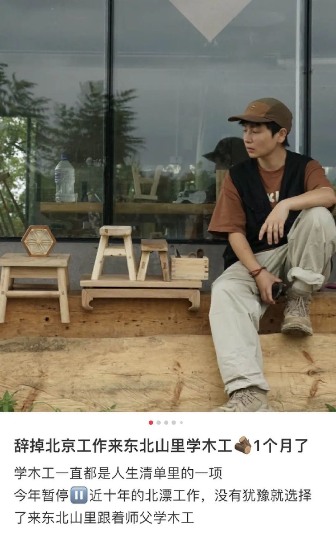 甚至还有北漂十年的人辞掉工作,特意去东北学木工。“这个过程需要一直动手,画线、锯榫头、凿榫眼……几乎全程是断网状态,意外地达成了远离手机的片刻修行。”