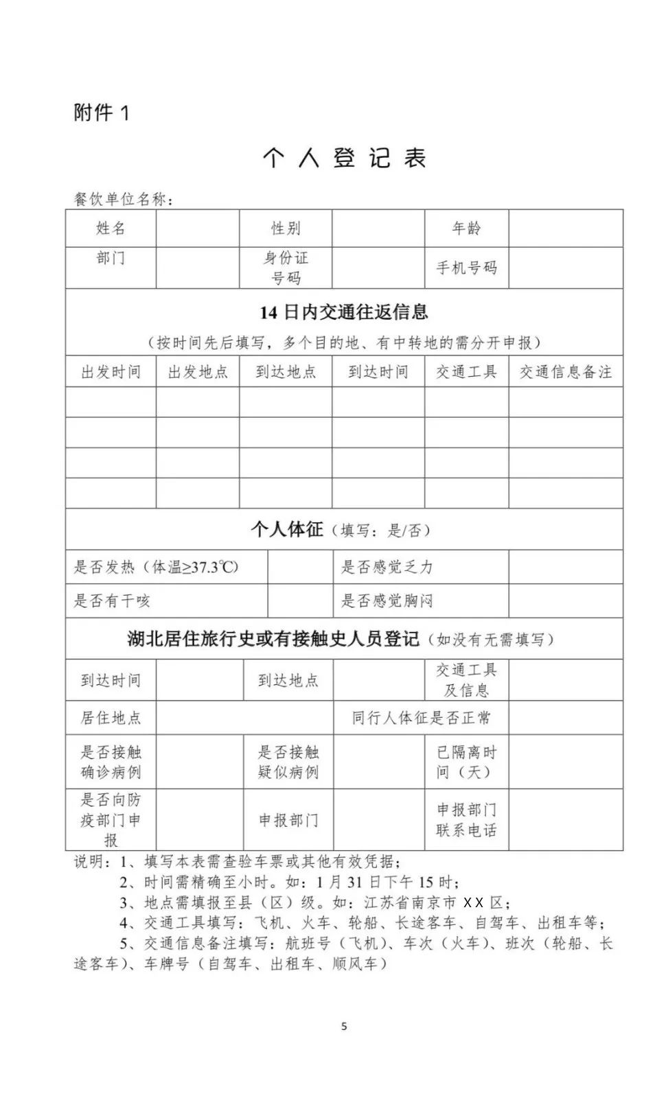● 3、严格人员管理,逐一登记人员信息。对外地返宁人员,要在其返宁前落实其14日内旅行(途径)地、接触人员情况,填写《个人登记表》(附件1)。抵宁满14天后,方可上岗。