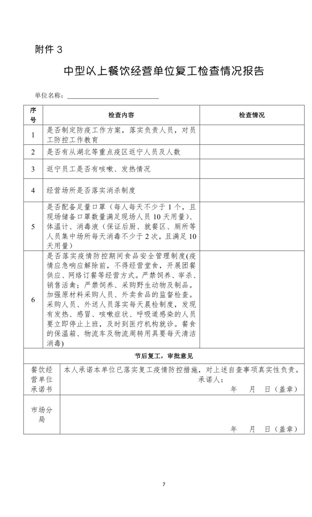 (2)各市场分局对申请复工的中型以上餐饮经营单位自查情况进行现场核查。现场核查通过的予以复工。