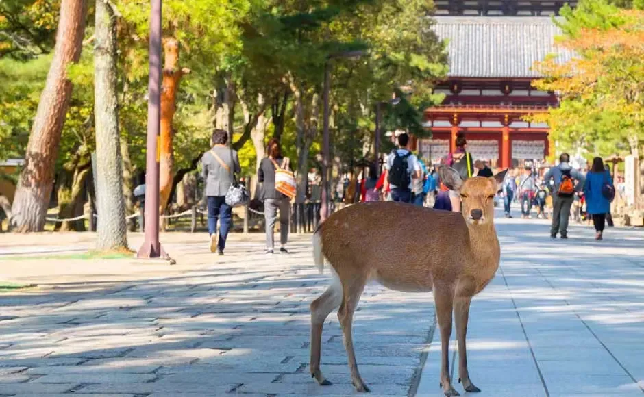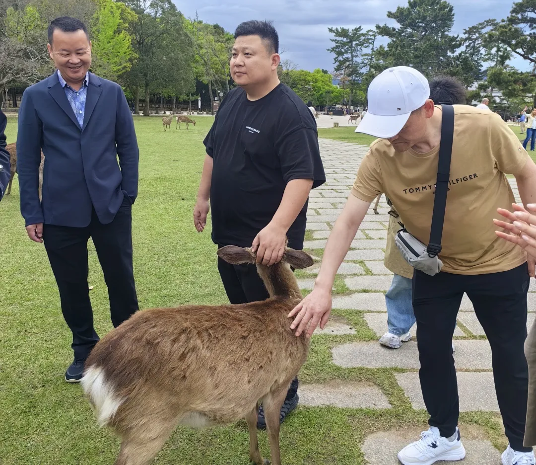 离开京都,考察团来到了奈良。这个拥有千年历史的古都,不仅以其古老的寺庙和神社闻名,更因那些温顺可爱的小鹿而吸引了无数游客。考察团成员们漫步在奈良的街头巷尾,不时有小鹿从身旁经过,它们或悠闲地散步,或好奇地打量着这些远道而来的客人。成员们纷纷拿出手机,记录下这温馨而有趣的瞬间。