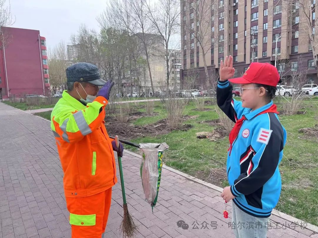 为进一步提高学生们的劳动意识,引导他们崇尚劳动、热爱劳动、尊重劳动者,践行劳动精神,值此“五一”国际劳动节到来之际,哈尔滨市电工小学开展“致敬劳动者 志愿服务暖人心”志愿服务活动。