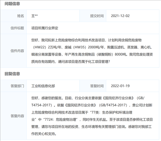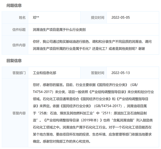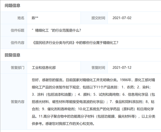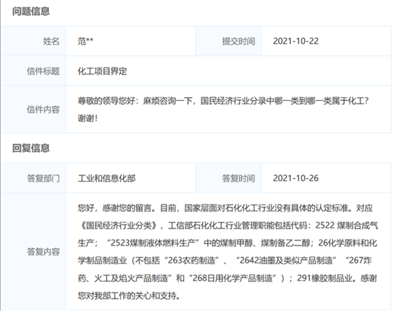 针对石油化工行业所提出的诸多问题,工信部会在其网站上给出权威答复。我们梳理了一些工信部针对石化行业的相关回复,以期为行业同仁解决类似问题提供相关思路。