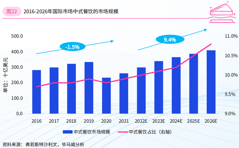 2、国际中式餐饮市场规模持续扩大,助推品牌海外扩张
