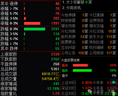 涨停数量变少了,主要还是集中在相关主线热点题材方向,跌停数量个股依然较多,主要还是被ST的个股较多,被资金抛弃。