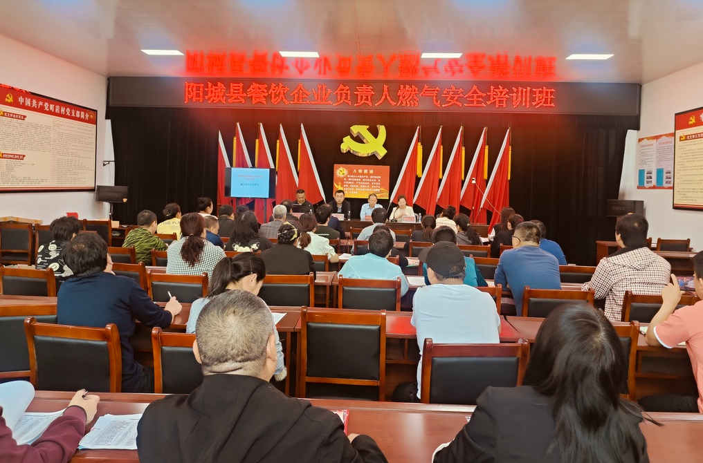 5月8日上午,由阳城县科学技术局主办的2024年第13期餐饮经营企业负责人燃气安全培训班在町店镇开班。