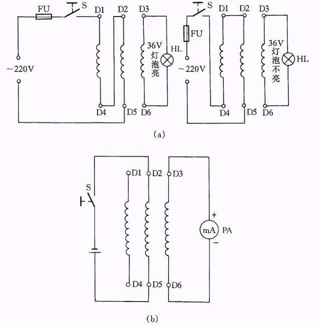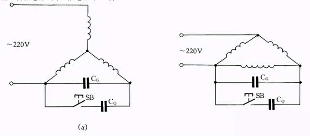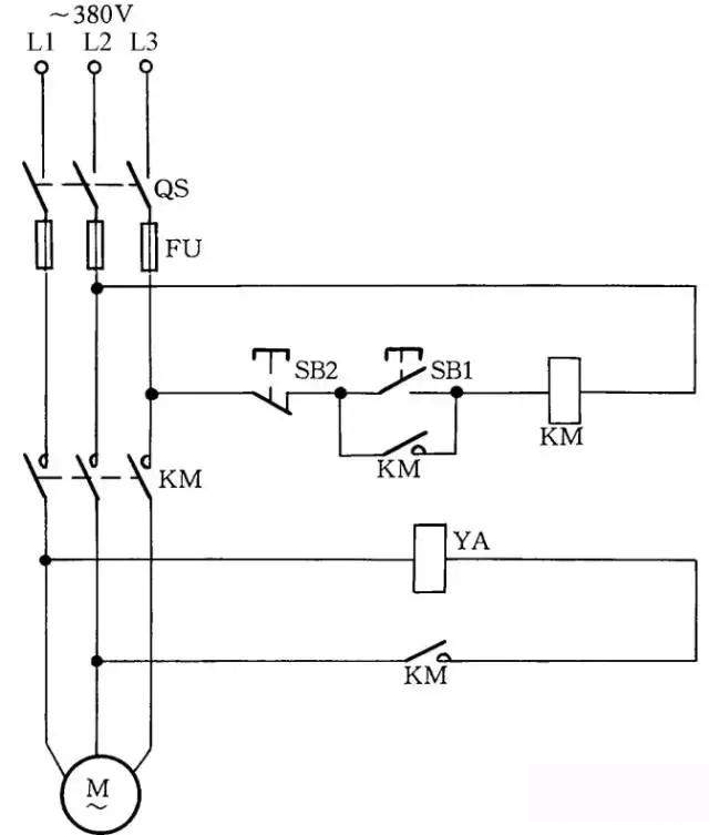 有部分三相吹风机有6个接线端子,接线方法如图2所示。采用△形接法应接入220V三相交流电源,采用Y形接法应接入380V三相交流电源。一般3英寸、3.5英寸、4英寸、4.5英寸的型号按此法接。其他吹风机应按其铭牌上所标的接法连接。 单相电动机接线方法很多,如果不按要求接线,就会有烧坏电动机的可能。因此在接线时,一定要看清铭牌上注明的接线方法。 图247为IDD5032型单相电容运转电动机接线方法。其功率为60W,电容选用耐压500V、容量为4μF的产品。图3(a)为正转接线,图3(b)为反转接线。 图4是JX07A-4型单相电容运转电动机接线方法。电动机功率为60W,用220V/50Hz交流电源、电流为0.5A。它的转速为每分钟1400转。电容选用耐压400~500V、容量8μF的产品。图4(a)为正转接线,图4(b)为反转接线。 有的单相吹风机引出4个接线端子,接线方法如图5所示。采用并联接法应接入110V交流电源,采用串联接法应接入220V交流电源。 目前,Y系列电动机被广泛应用。Y系列电动机具有体积小、外形美观、节电等优点。它的接线方式有两种:一种为△形,它的接线端子W2与U1相连,U2与V1相连,V2与W1相连,然后接电源;另一种为Y形,接线端子W2、U2、V2相连接,其余3个接线端子U1、V1、W1接电源。接线见图6。 目前,机床的工作灯、行灯都采用低压变压器提供36V安全电压,由于灯具在使用中经常移动,极易发生短路故障,造成熔断器熔断甚至烧坏变压器。如果使用36V小型中间继电器或36V交流接触器做变压器的通断开关,可避免烧坏变压器。线路如图7所示。 工作原理:闭合S后,按下按钮SB1,变压器得电输出36V低电压,使得继电器或交流接触器KA吸合。放松按钮SB1后,KA自锁触点使KA保持吸合,继续给变压器接通电源。如果变压器次级发生短路故障,继电器线圈电压为零,此时KA便失电释放,将变压器电源断开,保护变压器不被破坏。 图8所示是2Y/2Y电动机双速定子线组的引出线接线方法。 按图8(a)连接是一种转速,按图8(b)连接得到另一种转速。 直流电磁铁停电后,因有剩磁存在,有时会造成不良后果。因此,必须设法消除剩磁。图9中,YA是直流电磁铁线圈,KM是控制YA启停的接触器。KM吸合时,YA通电励磁;KM复位时,YA断直流电,并进行快速退磁。 快速退磁的工作原理是:直流电磁铁断电后,交流电源通过桥式整流器和YA向电容C充电,随着电容C两端电压的不断升高,充电电流越来越小,而通过YA的电流又是交变的,从而使电磁铁快速退磁。电容C的容量要根据电磁铁的实际情况现场试验决定。R为放电电阻。 采用交流电磁铁制动的三相异步电动机有时会因制动电磁铁延时释放,造成制动失灵。造成电磁铁延时释放的原因是接触器的主回路电源虽被切断,但电动机由于剩磁存在,定子绕组产生感应电动势加在交流电磁铁上,使电磁铁不会立即释放。解决方法很简单,只要在交流电磁铁线圈上串入一个交流接触器常开触点,使得断开电动机电源的同时断开电磁铁与电动机绕组线圈,即可使电磁铁立即释放。线路参见图10。 线路中YA为制动电磁铁,在通电后,制动解除;在断电后,YA立即制动。 他励直流电动机励磁电路如果断开,会引起电动机超速,产生严重不良后果,因此需要进行失磁保护。 在励磁电路内,串联一个欠电流继电器KI,其常开触点接在控制电路中。当励磁电流消失或减小到设定值时,KI释放,KI常开触点断开,切断电动机电枢电源,使电动机停转,从而避免超速现象发生,见图11。 当交流接触器的辅助触点损坏无法修复而又急需使用时,采用图12中所示的接线方法,可满足应急使用要求。按下SB1,交流接触器KM吸合。放松按钮SB1后,KM的触点兼作自锁触点,使接触器自锁,因此KM仍保持吸合。 图中SB2为停止按钮,在停止时,按动SB2的时间要长一点。否则,手松开按钮后,接触器又吸合,使电动机继续运行。这是因为电源电压虽被切断,但由于惯性的作用,电动机转子仍然转动,其定子绕组会产生感应电动势,一旦停止按钮很快复位,感应电动势直接加在接触器线圈上,使其再次吸合,电动机继续运转。 接触器线圈电压为380V时,可按图12(a)所示接线;接触器线圈电压为220V时,可按图12(b)接线。图12(a)的接线还有缺陷,即在电动机停转时,其引出线及电动机带电,使维修不大安全。因此,这种线路只能在应急时采用,并在维修电动机时,应断开控制电动机的总电源开关QS,这一点应特别注意。 为防止误操作电气设备,并防止非操作人员启动某些设备开关按钮,可采用加密的电动机控制线路,如图13所示。操作时,首先按下SB1按钮,确认无误后,再同时按下加密按钮SB3,这样控制回路才能接通,KM线圈才能吸合,电动机M才能转动起来。而非操作人员不知其中加密按钮(加密按钮装在隐蔽处),故不能操作此设备开关。 当供电电压在交流接触器吸引线圈额定电压的85%以下时,启动接触器衔铁将跳动不止,不能可靠吸合,在交流接触器的控制回路中串联一只整流管,改为直流启动交流运行,就可以避免上述问题。交流接触器低电压启动线路如图14所示。按下按钮SB1,经二极管VD半波整流的直流电压加在交流接触器KM线圈上,KM吸合。其辅助触点将二极管VD短接,交流接触器投入交流运行。 因为启动电流较大,所以这种线路只适用于操作不频繁的场合。线路中,VD应选用耐压大于700V的二极管,电流要根据交流接触器线圈电流而定。 HF-4-81系列发电机控制线路如图15所示,它与T2XV系列小型三