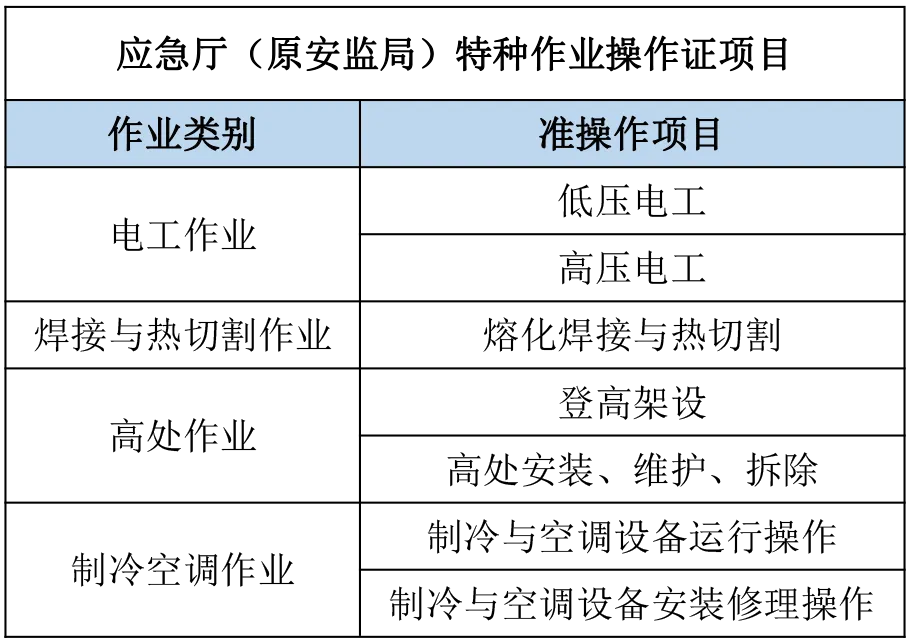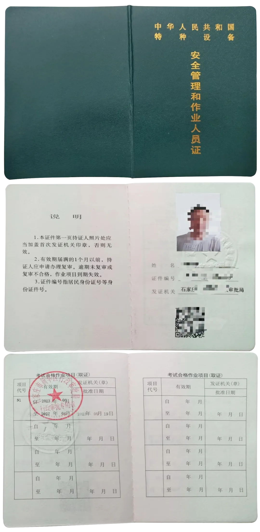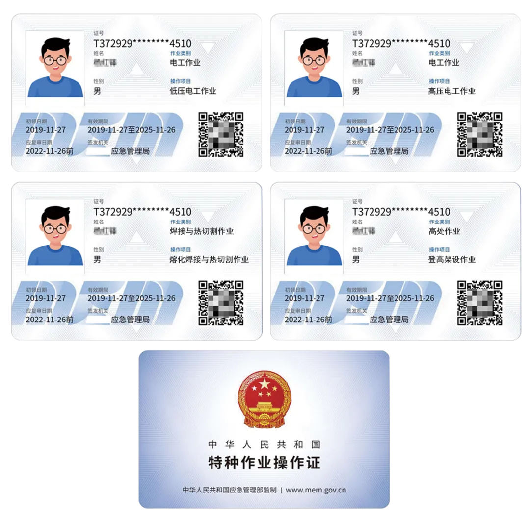 02 考试科目 理论+实操,每科考试满分100分,80分及格,理论考试合格后才可参加实操考试。 03 报名条件 年龄18-60周岁、初中以上学历、身体健康。 04 报名资料 (1)身 份 证正反面照片 (2)2寸白底照片 (3)初中以上学历电子版(或本人户口页) (4)报名申请表 05 为什么要持证上岗? 1.《安全生产法》第三十条规定:“生产经营单位的特种作业人员必 须按照国家有关规定经专门的安全作业培训,取得相应资格,方可上岗作业。” 2.《安全生产法》第九十七条规定:“生产经营单位有下列行为之一的,责令限期改正,处十万元以下的罚款;逾期未改正的,责令停产停业整顿,并处十万元以上二十万元以下的罚款,对其直接负责的主管人员和其他直接责任人员处二万元以上五万元以下的罚款”,其中第(七)项规定“特种作业人员未按照规定经专门的安全作业培训并取得相应资格,上岗作业的。” 3.《中华人 民共和国刑法》第 二百八十条规定:“伪造、变造、买卖或者盗 窃、抢夺、毁灭国家机关的公文、证 件、印 章的,处三年以下有 期 徒 刑、拘役、管制或者剥 夺 政 治 权 利,并处罚金;情节严重的,处三年以上十年以下有 期 徒 刑,并处罚金。” 06 证书样例 特种作业操作证