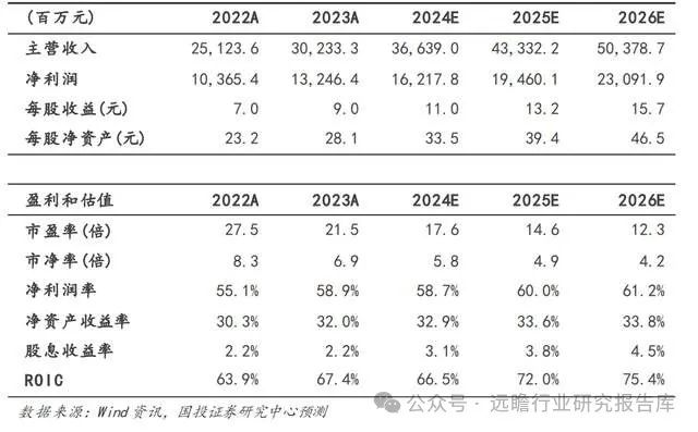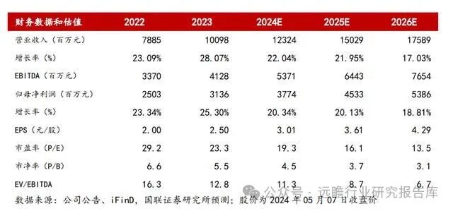 我们预计公司2024-2026年营业收入分别为123.24/150.29/175.89亿元,同比增速分别为22.04%/21.95%/17.03%,归母净利润分别为37.74/45.33/53.86亿元,同比增速分别为20.34%/20.13%/18.81%,EPS分别为3.01/3.61/4.29元/股,3年CAGR为19.76%。