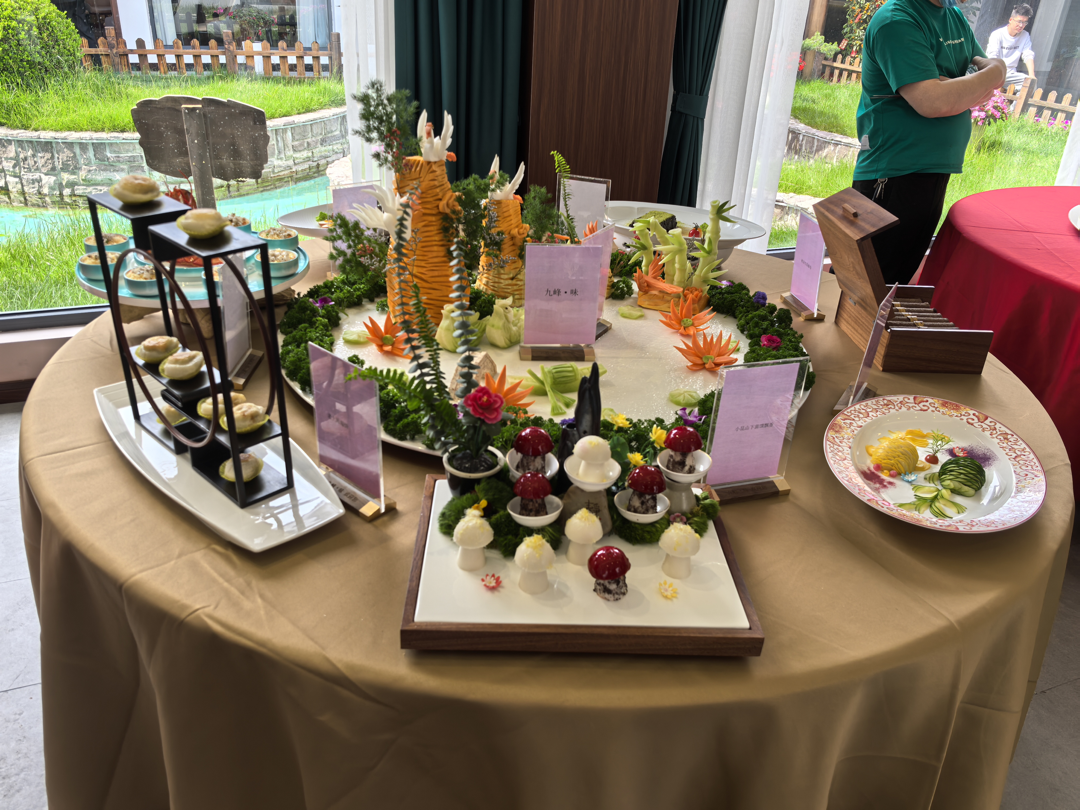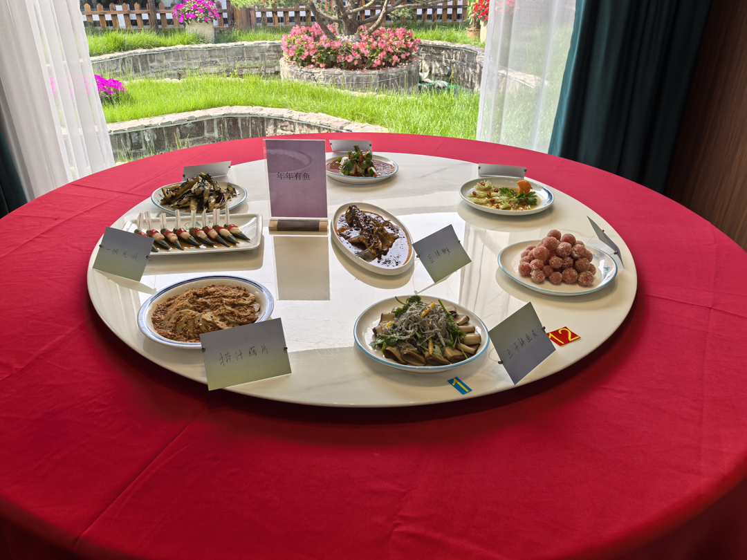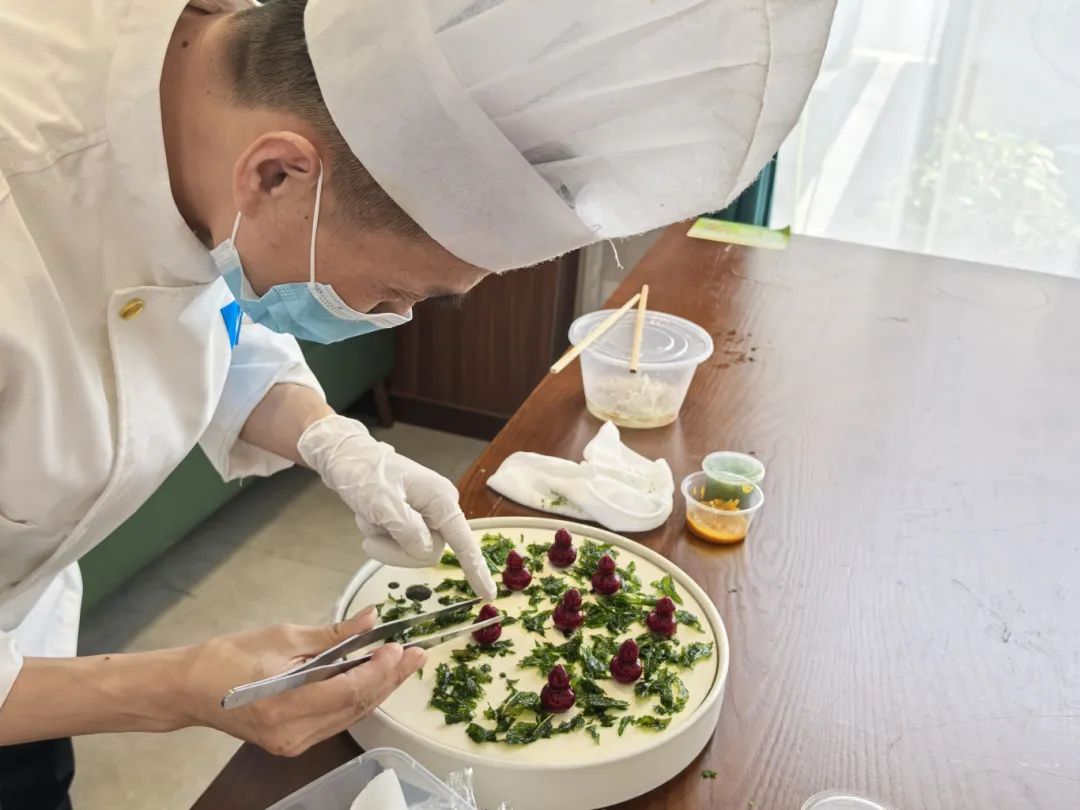 本次竞赛不仅展现了小昆山镇餐饮行业职工精湛的烹饪技艺,也彰显了他们对美食的热爱和追求。这场大赛不仅是一场厨艺比拼,更是一次对职工技能和精神风貌的全面检阅。本次竞赛以“建功‘十四五’ 奋进新征程”为主题,以助力小昆山镇旅游事业为目标,设置两个竞赛项目和一个主题展示。每支队伍需在规定时间内完成三个热菜、三个冷盘制作,同时搭配点心和雕刻,组成一桌主题展示宴席。