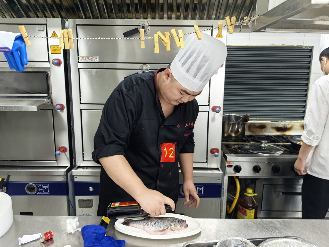 比赛现场气氛热烈,各参赛选手全神贯注,一丝不苟。挥舞着锅铲,切菜、腌制、烹炒、摆盘,每一环节均展示刀工娴熟、烹饪精准,每一个动作均体现出精益求精的职业精神。他们用色香味俱佳的菜品,诠释着对美食的热爱和追求。