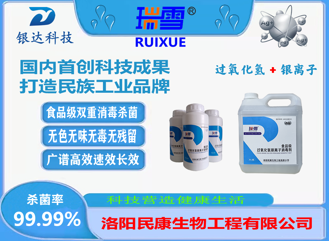 “瑞雪牌过氧化氢银离子复合消毒剂”是一款安全无毒、广谱高效、无残留型消毒剂,是一款全球领先的第5代高效环保型消毒杀菌剂。