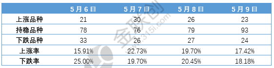 据金联创数据监测,国内化工现货市场来看,五一节后涨跌品种变化不大,周二(5月7日)和周三(5月8日),化工市场上涨品种略有增多。