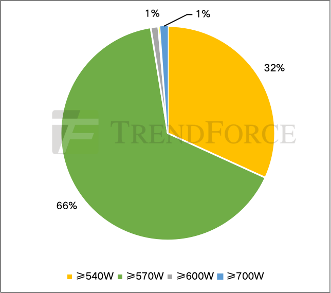 2024年1-4月,国内共有约74.65GW组件招标,540W及以上的组件招标规模约23.7GW(31.8%),570W及以上组件招标规模约49GW(65.6%),600Wp以上的组件招标规模1.9GW(2.56%)。值得注意的是,约有超一半项目(0.96GW)明确提出招标700W及以上组件,700W+高功率时代正式来临。