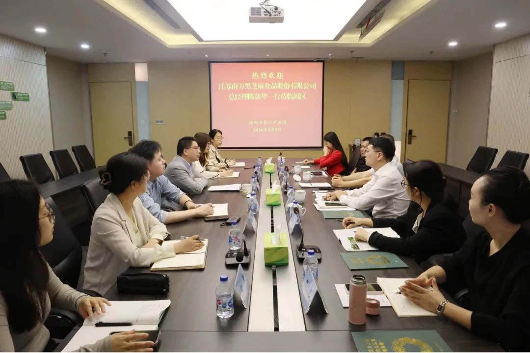 5月9日下午,江苏南方黑芝麻食品股份有限公司总经理陈新华一行赴园区参观考察,洽谈项目合作。党委书记、管理办主任朱午参加接待。