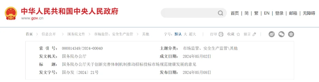 重磅丨国办发文:创新完善体制机制,推动招标投标市场规范健康发展