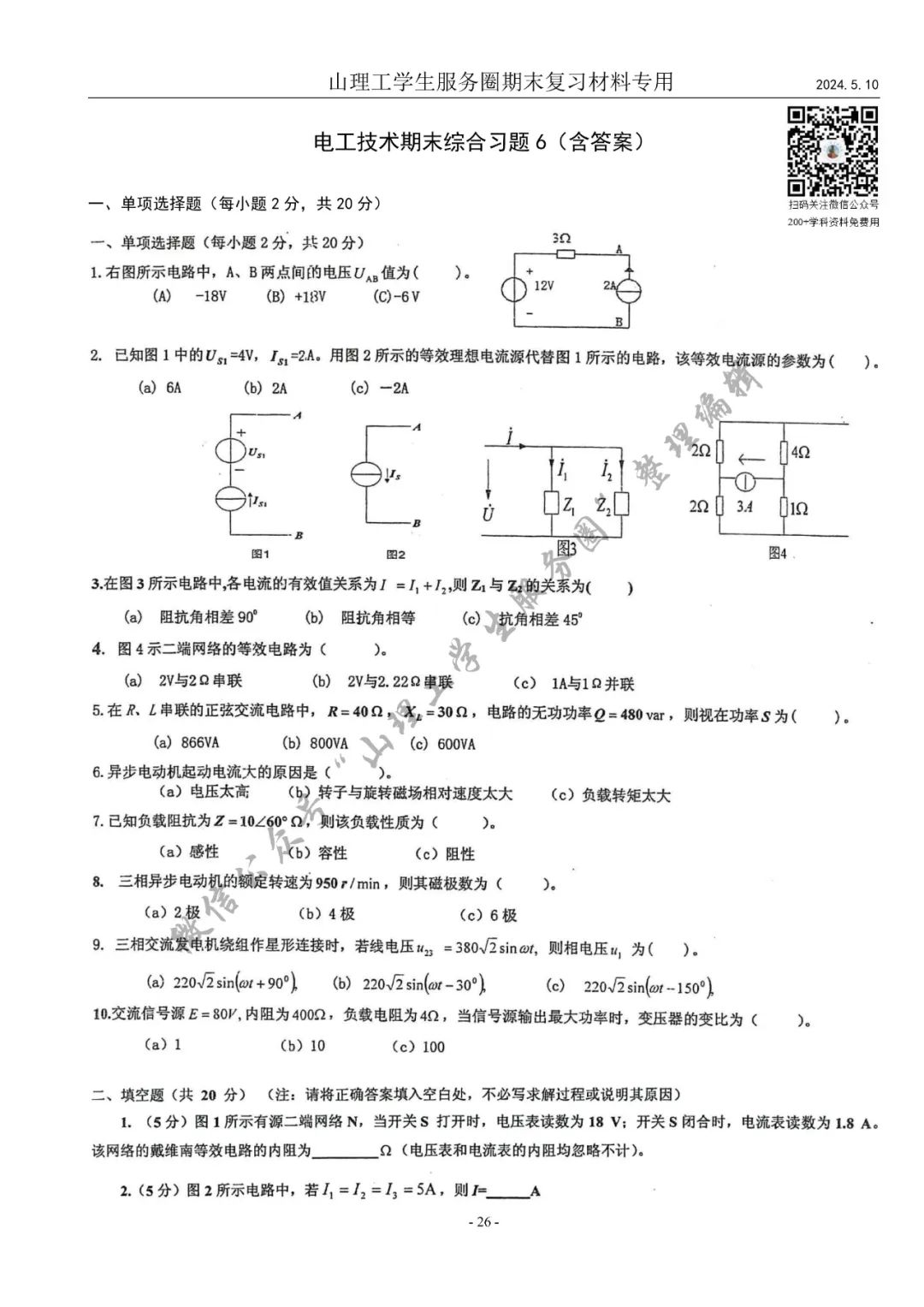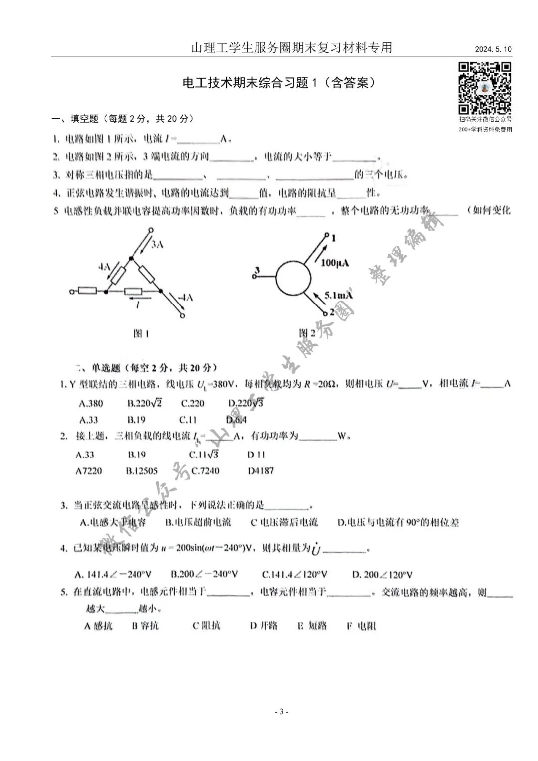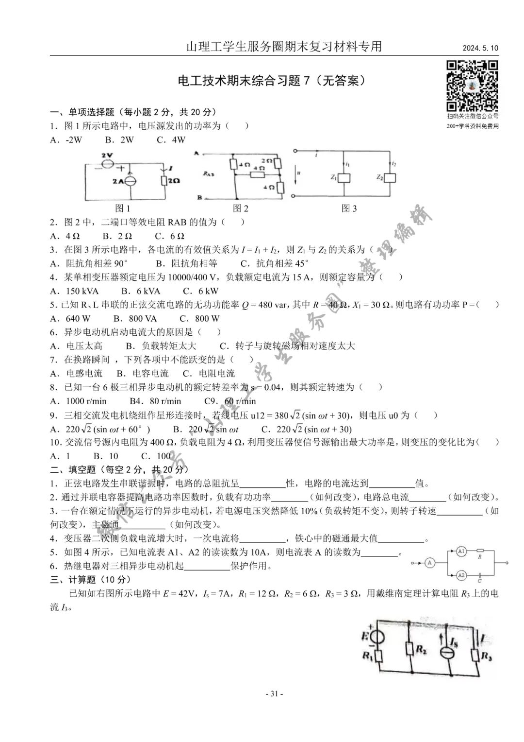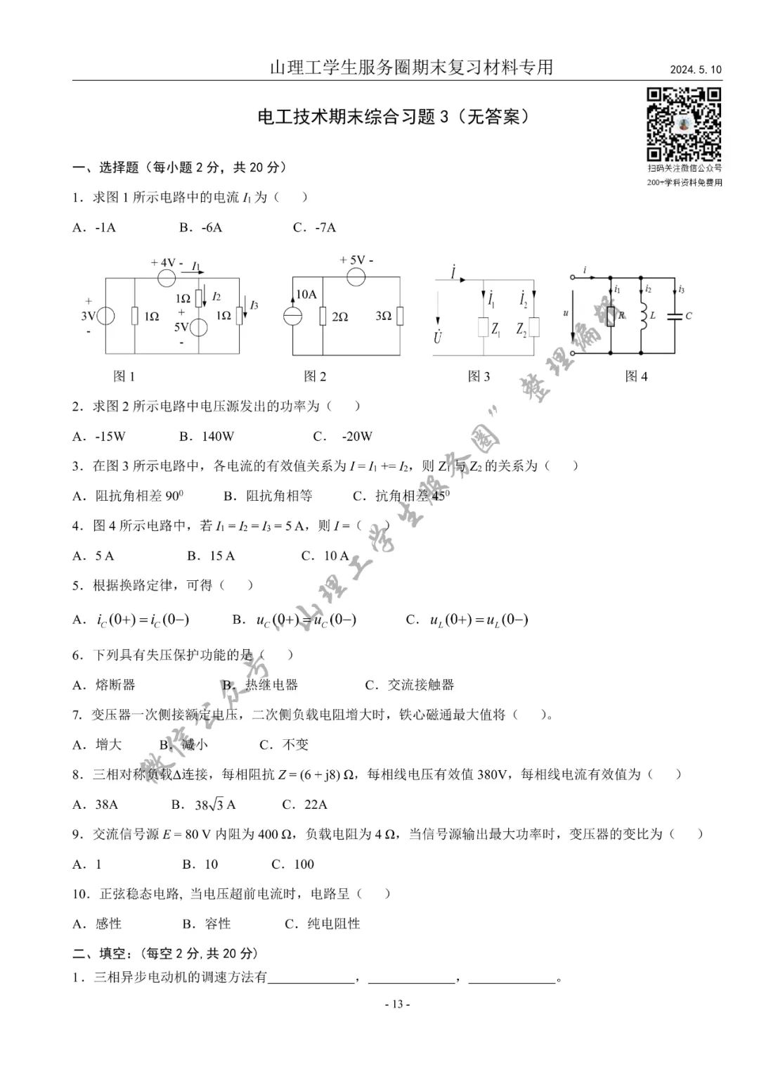 电工技术期末复习习题册(2024年第一版)资料介绍及预览