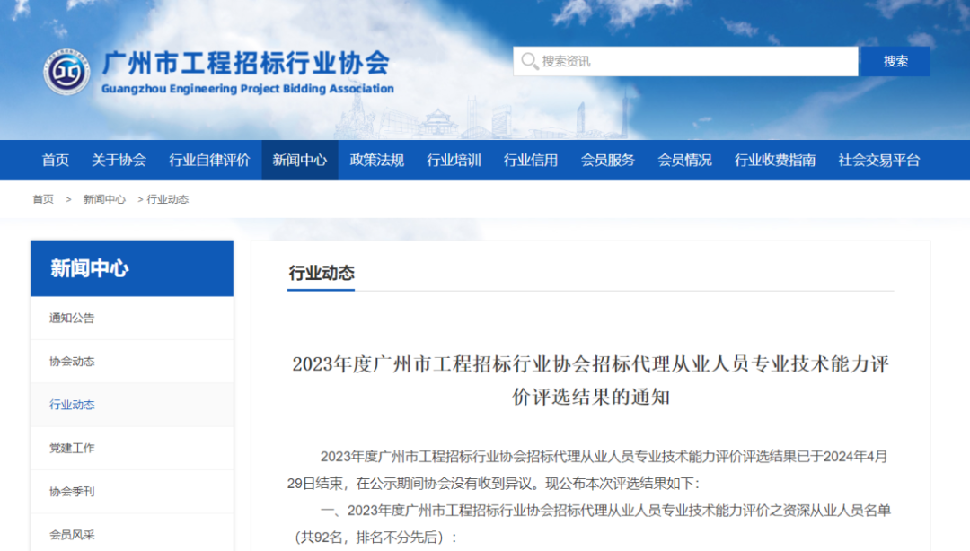 近期,广州市工程招标行业协会公布2023年度协会招标代理从业人员专业技术能力评价评选结果,我公司陈意、陈子轩、徐云等10人获评为“资深从业人员”;吴泽均 、李明昌 、李耀康3人获评为“诚信从业人员”。