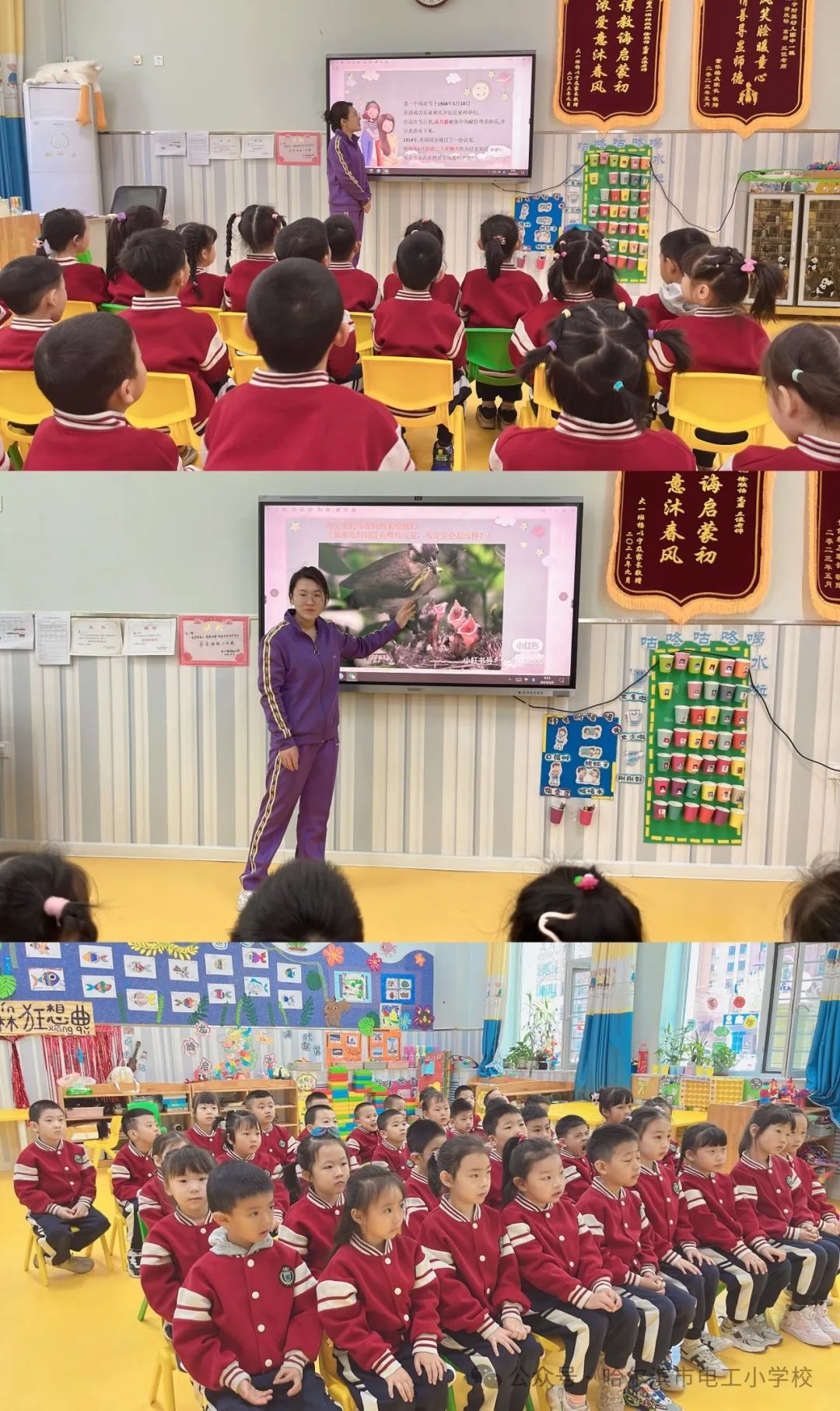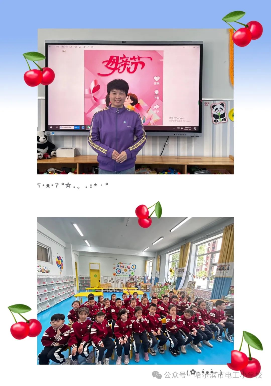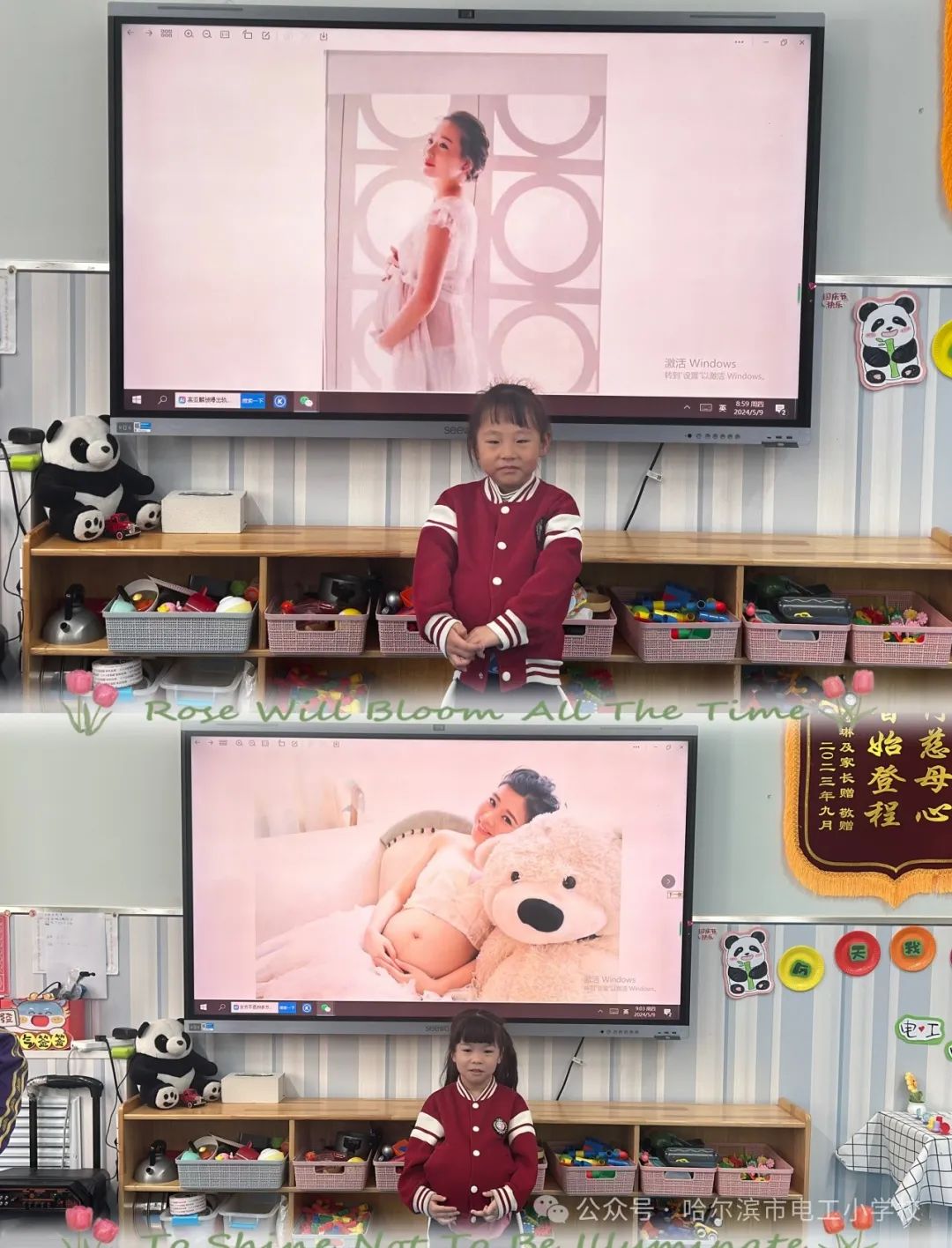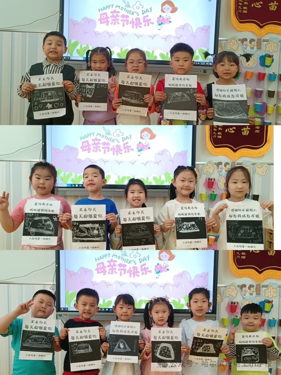 一张张缤纷的画作、一朵朵毛茸茸的小花、一块块五彩的黏土,都承载着电工宝贝们满满的心意。礼物虽小,爱很大,让宝贝儿们.用简单的方式来表达对妈妈的爱,用他们自己亲手制作的礼物,表示对妈妈的爱。