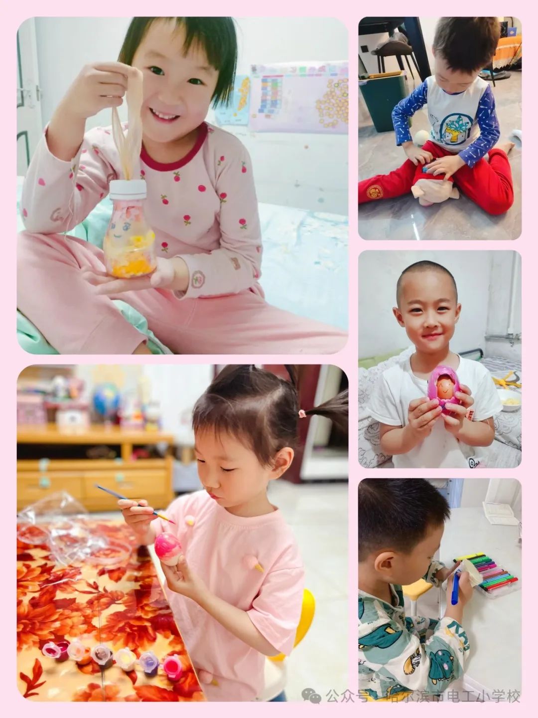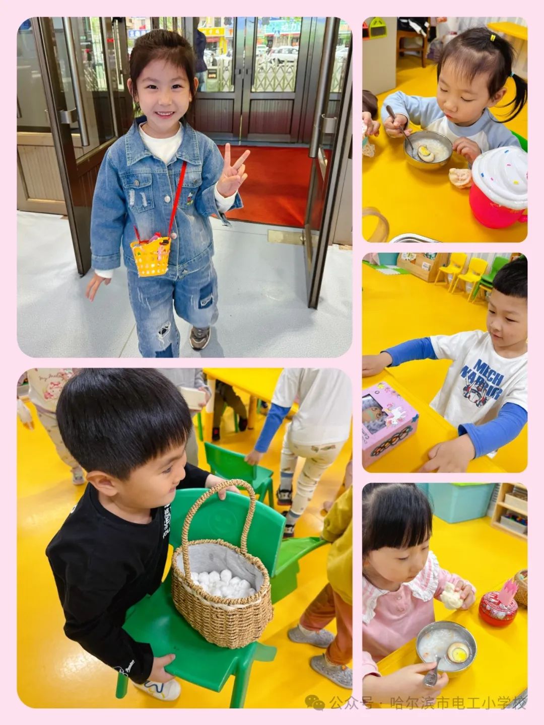 中班的小朋友在母亲节前开展了“护蛋大行动”的游戏,每个小朋友都会准备一个鸡蛋,并给鸡蛋进行装扮,并给鸡蛋取了名字,学着妈妈的样子带着“蛋宝宝”们开启他们有责任、有担当的一天…护蛋游戏让孩子们在角色体验中感受生命的脆弱与可贵,学会感恩、珍惜和关爱,激发了责任意识,也深刻体会母爱的伟大和辛苦,孩子们回家后通过自己的方式讲述自己是保护“当宝宝”的,也表达了对妈妈的爱。