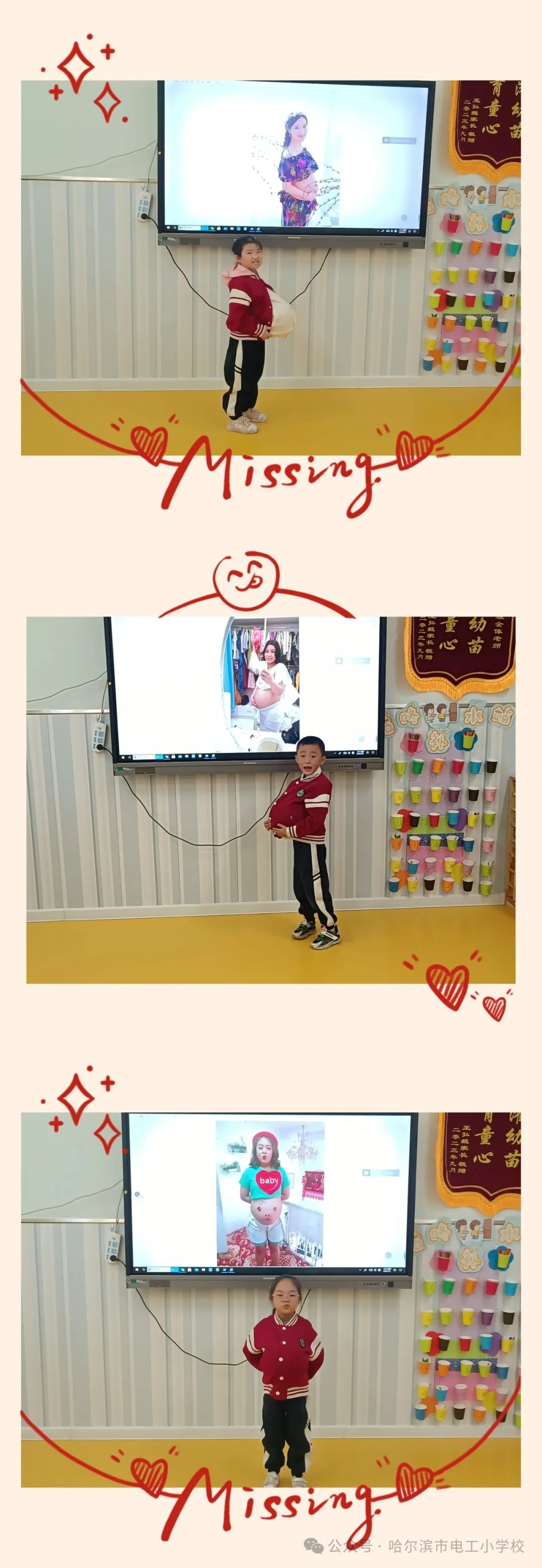 体验过程中孩子们纷纷表示:当“孕妈妈”真的太不容易了,不管做什么事情都要小心翼翼的保护好自己的“宝宝”,不能让自己的“宝宝”受伤,终于明白原来我的妈妈也是这么无微不至的照顾着我,让我健康的成长。