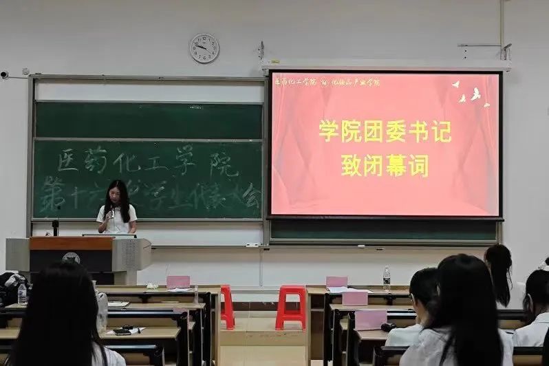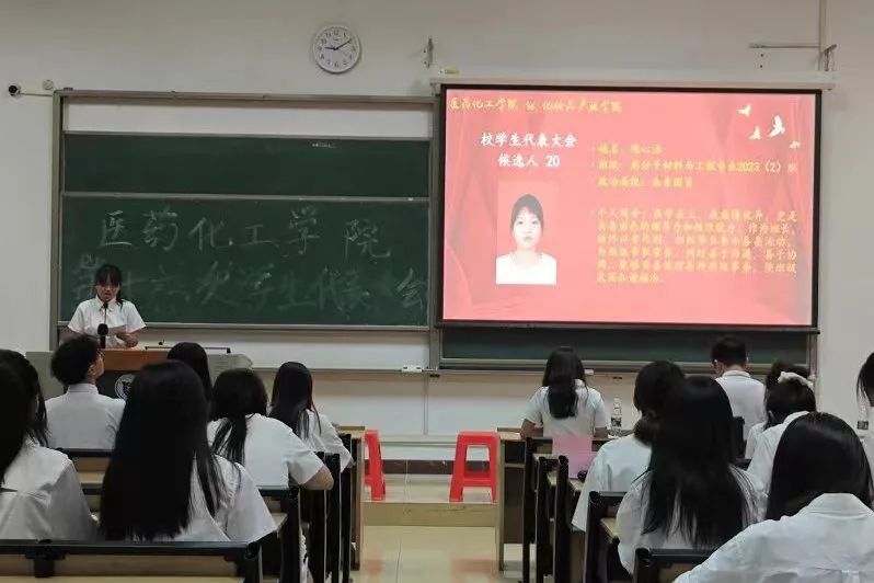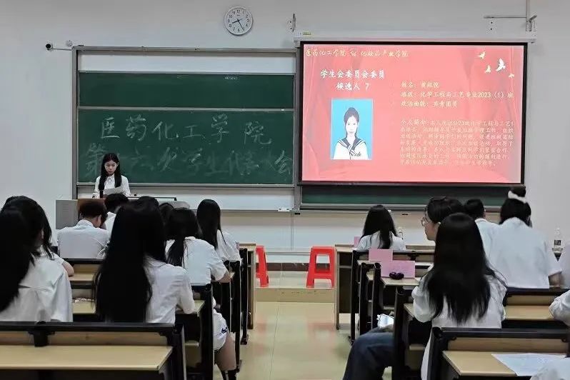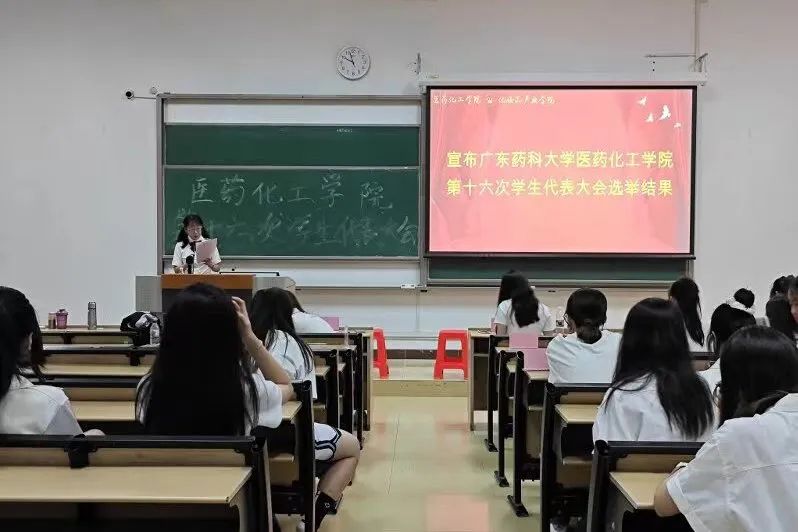 大会选举王鑫、曹雪彤、赖静蓉为医药化工学院第十六届学生会主席团成员;选举为王鑫、李凯琦、吴锶涵、林晓晓、黄祖倪为医药化工学院第十六届学生会委员会委员;选举王飞霞、王书豪、王鑫、甘子健、许陈翰、麦洁滢、李洁慧、李润馨、吴晓诗、岑颖、谷珞珈、沈雯怡、张雪菲、陈心洁、林晓晓、林晓燕、罗一欢、罗文静、莫敏筠、黄俊杰、黄洁纯、黄祖倪、黄慧玲、潘心怡为出席广东药科大学第三十三次学生代表大会代表。