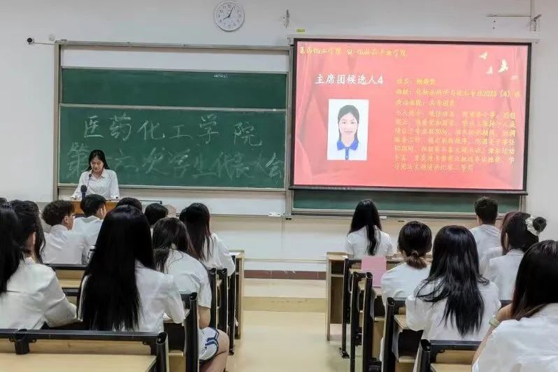 2024年5月10日晚,医药化工学院第十六次学生代表大会于中山校区教学楼1202教室顺利召开。学院党委副书记李南、团委书记赵晓旋、校学生会代表陈梓童、学院团委学生副书记李姝琪、学院第十五届学生会主席团成员和学生代表等近90人出席本次大会。