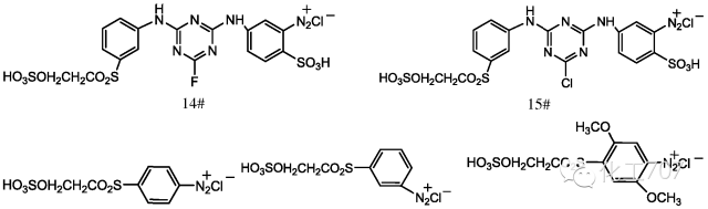 (1)顺法 对氨基苯磺酸钠与2-萘酚制备酸性橙-II染料; 芳香族伯胺与亚硝酸钠反应制备芳香族重氮化合物等。 (2)反加法 间苯二胺生产二氟硼酸间苯二重氮盐; 苯胺与亚硝酸钠反应生产苯胺基重氮苯等。 (3)亚硝酰硫酸法 2-氰基-4-硝基苯胺、2-氰基-4-硝基-6-溴苯胺、2,4-二硝基-6-溴苯胺、2,6-二氰基-4-硝基苯胺和2,4-二硝基-6-氰基苯胺为重氮组份与端氨基含醚基的偶合组份经重氮化、偶合成单偶氮分散染料; 2-氰基-4-硝基苯胺为原料制备蓝色分散染料等。 (4)硫酸铜触媒法 邻、间氨基苯酚用弱酸(醋酸、草酸等)或易于水解的无机盐和亚硝酸钠反应制备邻、间氨基苯酚的重氮化合物等。 (5)盐析法 氨基偶氮化合物通过盐析法进行重氮化生产多偶氮染料等。 | |||