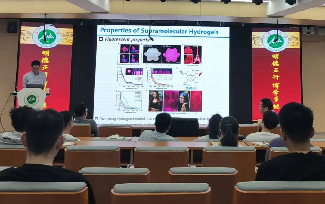 王晓龙研究员的报告内容丰富、耐人寻味,使在场师生切实体会到了氢键超分子功能水凝胶的应用前景,在场师生也在讲座接近尾声时纷纷提出了自己的疑惑,王晓龙研究员逐一进行耐心解答,现场氛围活跃。