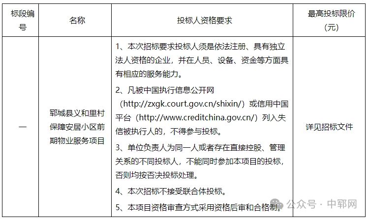 2、项目名称:郓城县义和里村保障安居小区前期物业服务项目