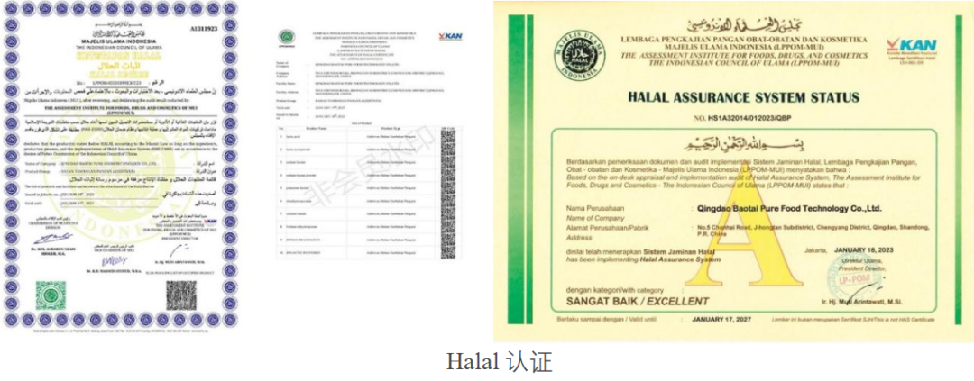 公司通过了ISO22000食品质量安全管理体系认证、Koshe、MUL Halal等认证,年综合生产能力超过5000吨,产品销售遍布全国各个省市,并远销东南亚、北美、南美、欧洲等国家和地区。