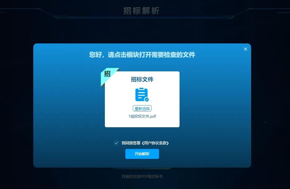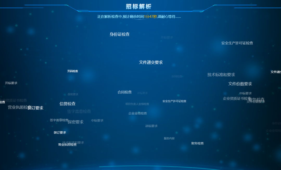 1.解析结果模块化:工具能够全面扫描招标文件的每一个角落,识别出文件中的关键信息,如项目基本信息提取、投标人须知前附表、评分项要求、合标项要求、废标项要求、投标截止日期等,确保没有任何重要信息被遗漏。